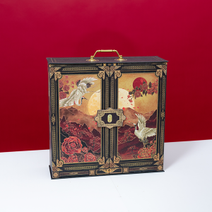 Bộ hộp Tiên Hạc là một tuyệt tác mang cảm hứng Đông phương thanh nhã. Họa tiết tiên hạc bay giữa nền sắc đỏ trầm, điểm xuyết hoa và các đường nét trang trí tinh xảo, được chế tác tỉ mỉ đến từng chi tiết. Tổng thể vừa gợi không khí Tết truyền thống, vừa toát lên vẻ sang trọng – đẳng cấp, phù hợp làm quà biếu trang nhã và đầy ý nghĩa.