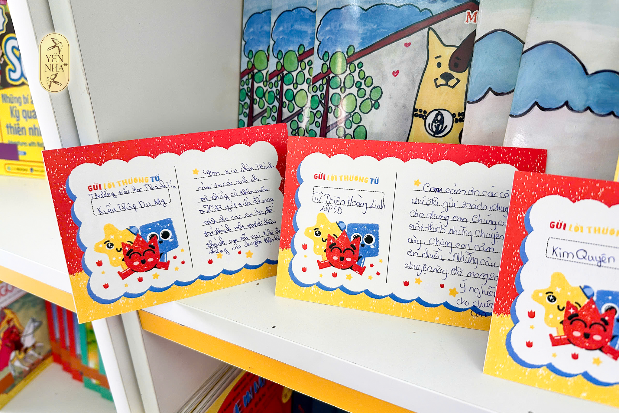 Đặc biệt, những tấm thiệp viết tay của học sinh được đặt lại ngay ngắn trong thư viện như một lời nhắc nhẹ: đôi khi sự biết ơn của trẻ em không ồn ào, nhưng rất sâu. Nhìn nét chữ còn vụng về, người lớn lại thấy lòng mình mềm đi — vì hiểu rằng với các em, một thư viện không chỉ là “có thêm sách”, mà là “có thêm một điều để tin”.